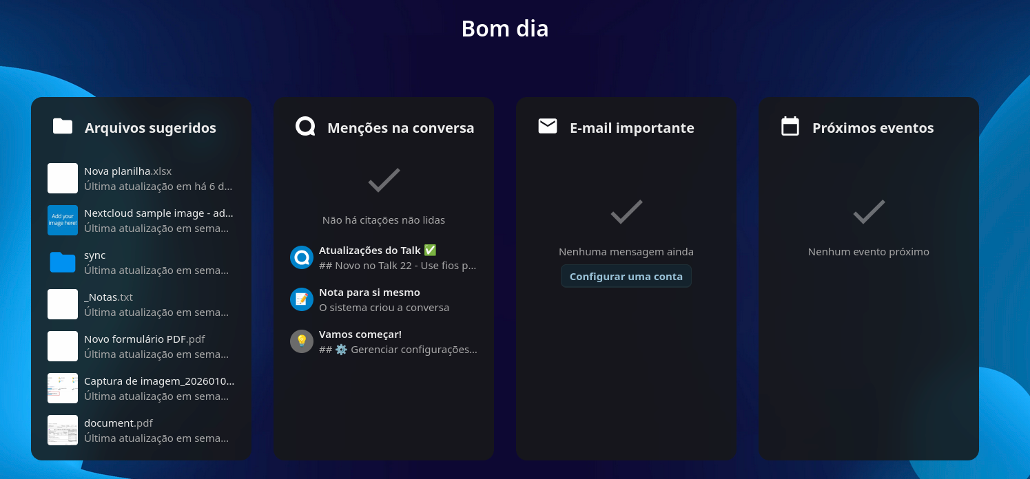 O Nextcloud é acessível por meio de navegadores web, sendo compatível com qualquer navegador moderno. O acesso via web disponibiliza ao usuário todas as funcionalidades da plataforma, permitindo a utilização completa de seus recursos sem a necessidade de instalação de software adicional.